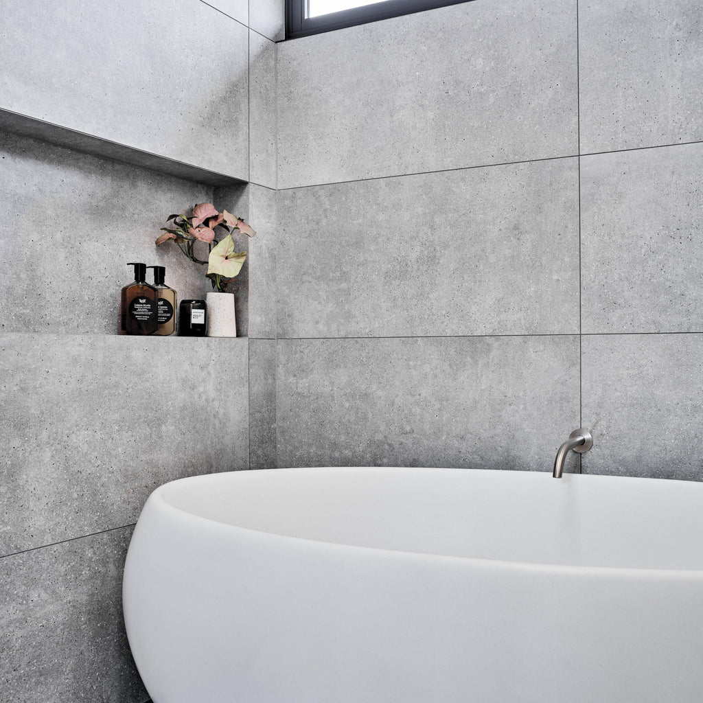 Bottega channels the sophistication of architectural concrete, pairing fine aggregate detail with a smooth and slightly undulated surface. Its soft industrial character offers both tactility and restraint, making it an elegant canvas for minimalist, contemporary, or casually layered spaces. Available as rectified porcelain floor tiles with complementary ceramic wall formats, the collection also features a textured dimensional wall tile option to pair perfectly together. A curated palette, from weightless neutrals to deep charcoal, ensures seamless continuity, enabling cohesive, elevated design across residential and commercial spaces.