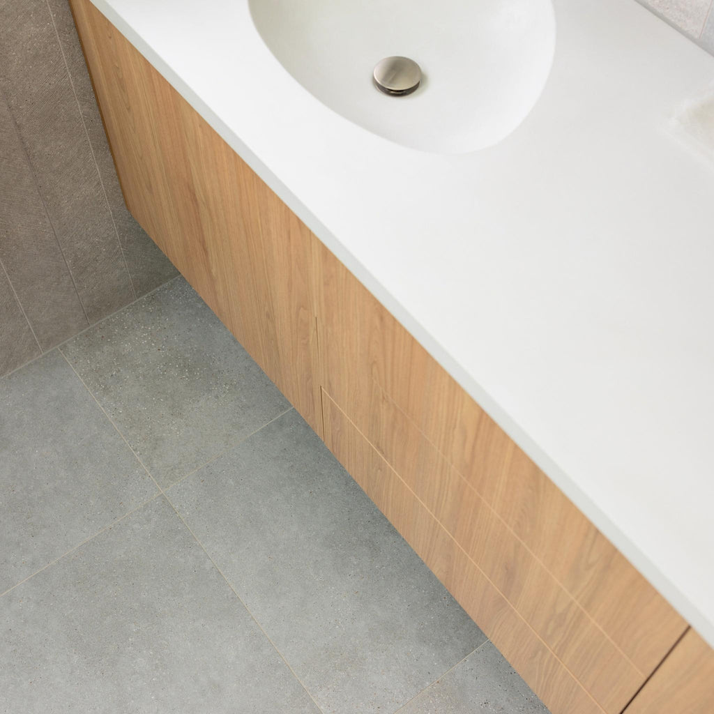 Bottega channels the sophistication of architectural concrete, pairing fine aggregate detail with a smooth and slightly undulated surface. Its soft industrial character offers both tactility and restraint, making it an elegant canvas for minimalist, contemporary, or casually layered spaces. Available as rectified porcelain floor tiles with complementary ceramic wall formats, the collection also features a textured dimensional wall tile option to pair perfectly together. A curated palette, from weightless neutrals to deep charcoal, ensures seamless continuity, enabling cohesive, elevated design across residential and commercial spaces.