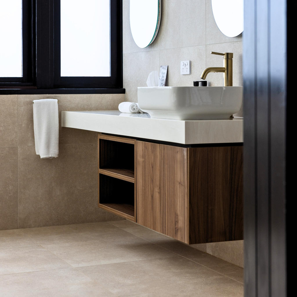 Bottega channels the sophistication of architectural concrete, pairing fine aggregate detail with a smooth and slightly undulated surface. Its soft industrial character offers both tactility and restraint, making it an elegant canvas for minimalist, contemporary, or casually layered spaces. Available as rectified porcelain floor tiles with complementary ceramic wall formats, the collection also features a textured dimensional wall tile option to pair perfectly together. A curated palette, from weightless neutrals to deep charcoal, ensures seamless continuity, enabling cohesive, elevated design across residential and commercial spaces.