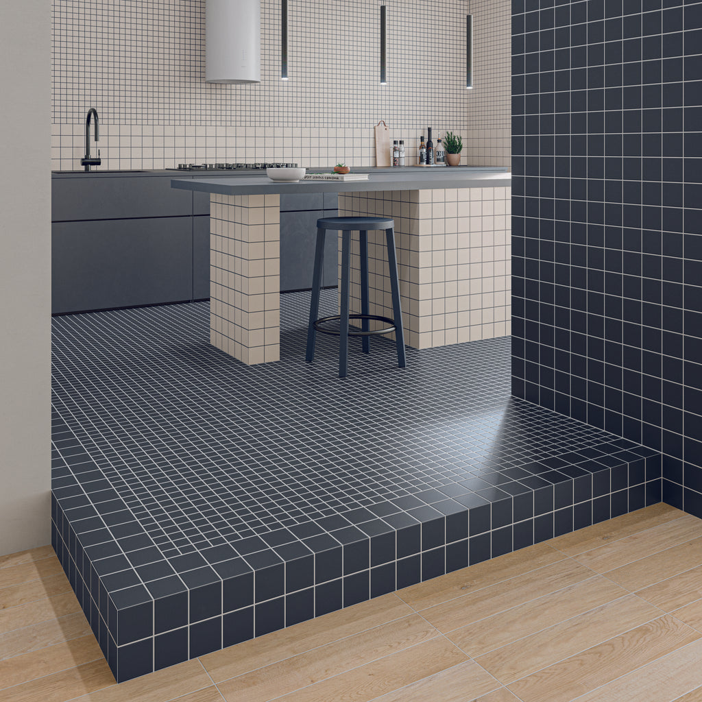 The Raster collection offers a playful yet refined take on the traditional mosaic, reimagined in a 150x150mm porcelain format suitable for both walls and floors. Each tile features fine routed lines that are seamlessly filled during grouting, achieving the detailed look of a sheeted mosaic with the simplicity of standard tile installation. The resulting finish is a subtle interlocking surface that brings a strong geometric patterning, texture, and visual structure to any space. With a curated palette of soft neutrals and expressive colourways, Raster invites creative freedom with the ability to mix tones and patterns for unique combinations and layered compositions.