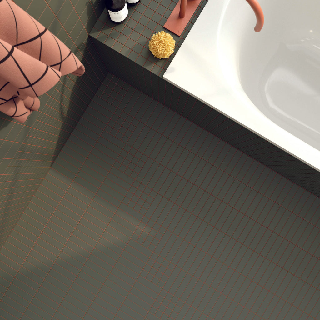 The Raster collection offers a playful yet refined take on the traditional mosaic, reimagined in a 150x150mm porcelain format suitable for both walls and floors. Each tile features fine routed lines that are seamlessly filled during grouting, achieving the detailed look of a sheeted mosaic with the simplicity of standard tile installation. The resulting finish is a subtle interlocking surface that brings a strong geometric patterning, texture, and visual structure to any space. With a curated palette of soft neutrals and expressive colourways, Raster invites creative freedom with the ability to mix tones and patterns for unique combinations and layered compositions.