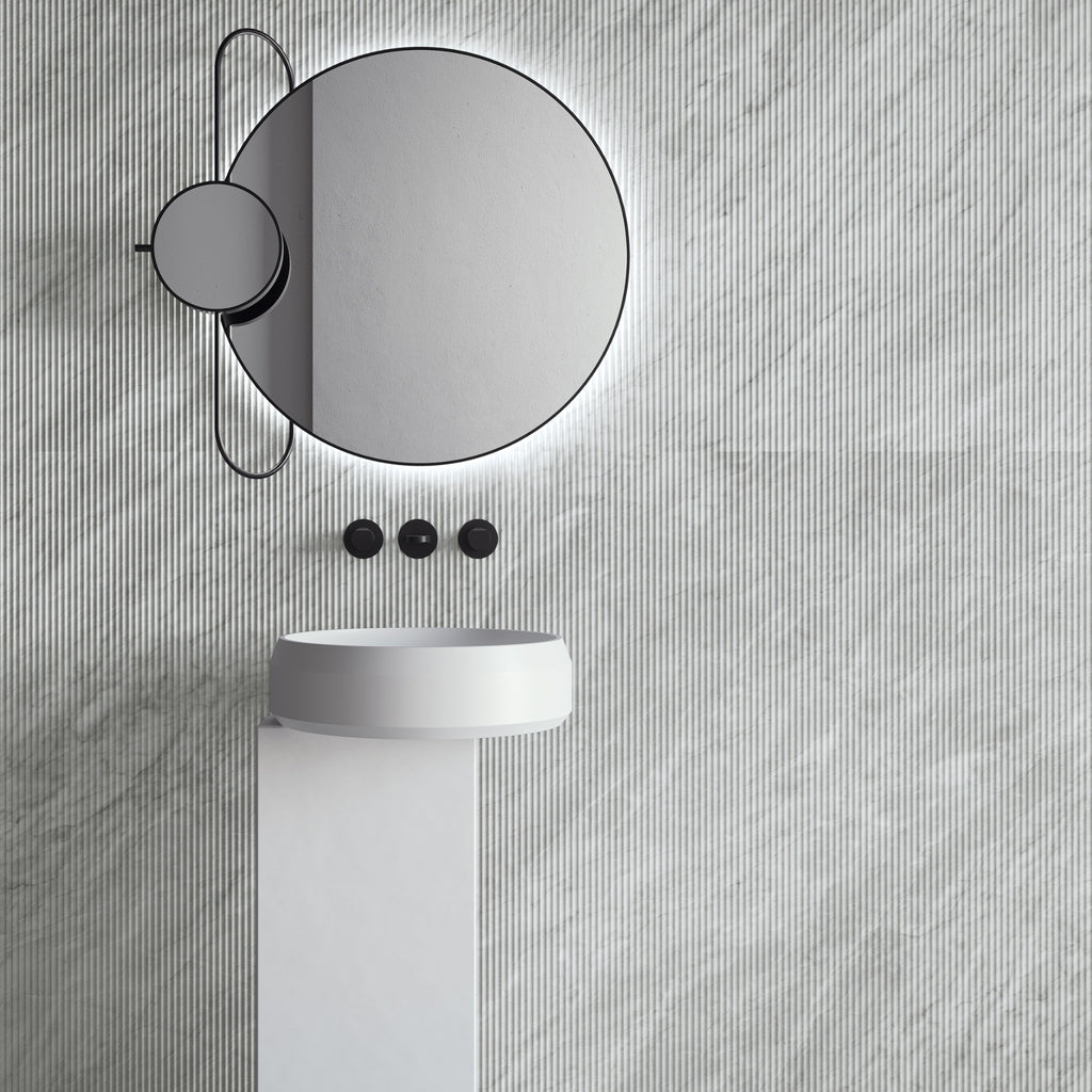 Designed to compliment the core Versilia range, Versilia 3D introduces a refined lineality that adds depth and dimension to interior spaces. The 600x1200x9mm format pairs effortlessly with the rest of the collection, while the silk finish softens the relief without losing definition. Available in Grey, Ivory, and Silver, it maintains perfect visual continuity across surfaces. Use it to break repetition, define zones, or introduce quiet detail to interior spaces. Its porcelain composition makes Flute the perfect decorative for both indoor and outdoor wall applications.