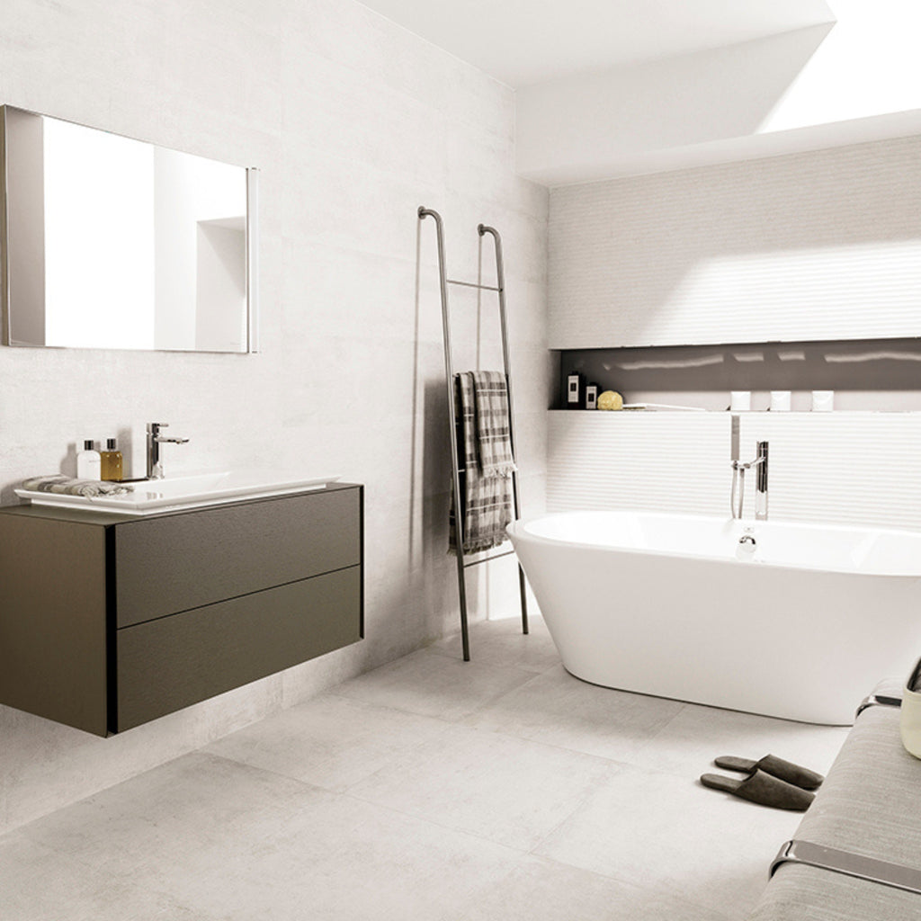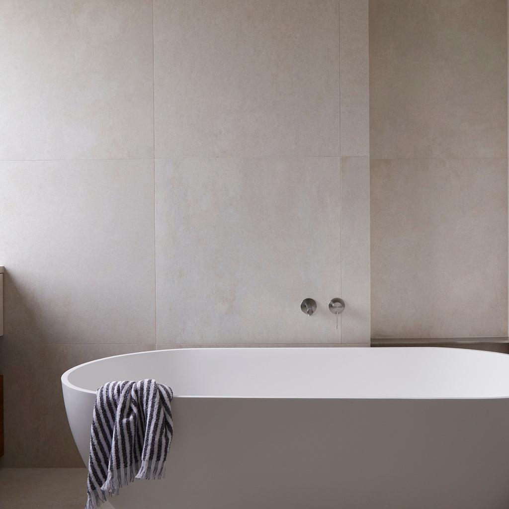 Newport White showcases the elegance & simplicity of concrete. This tile, independently certified by Global GreenTag, offers a premium, luxurious feel at an attractive price of $86.90/m², available while stocks last.
